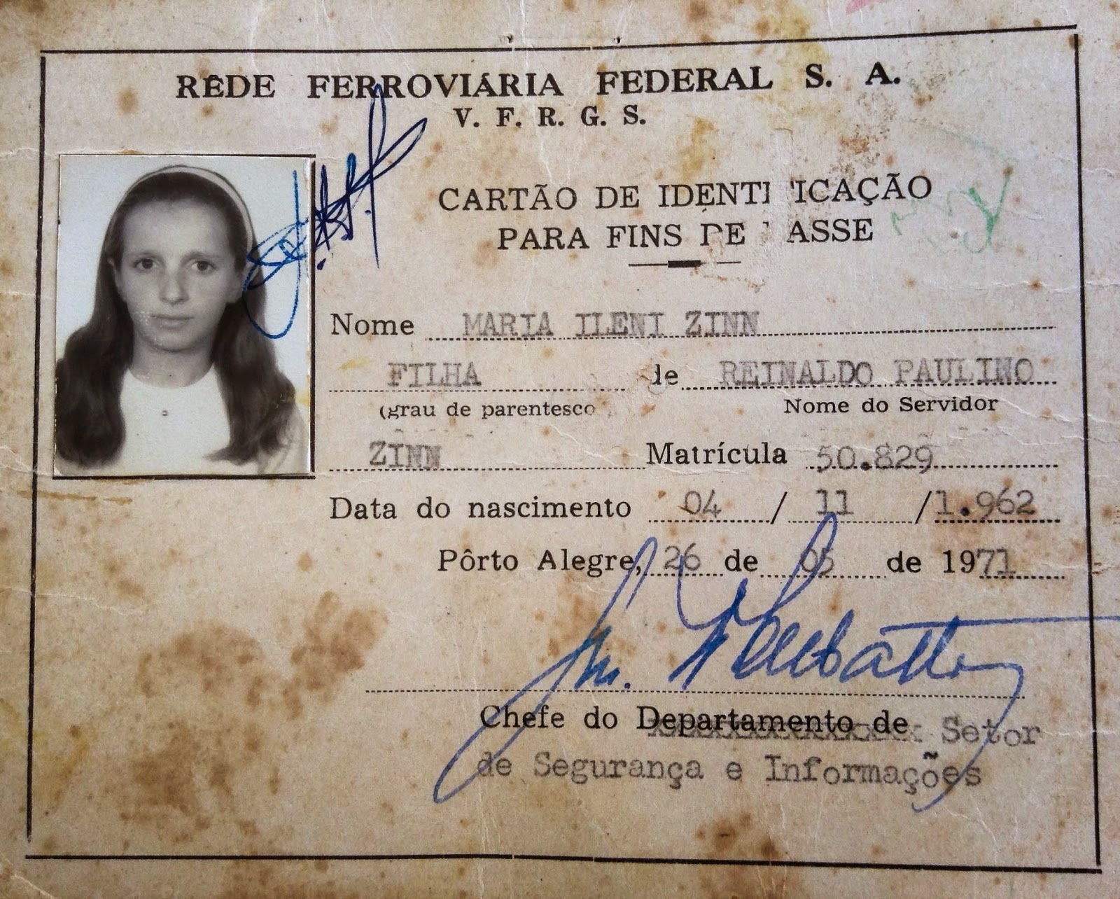 Por ser filha de ferroviário, a jovem Maria Ileni Zinn, então com 9 anos, tinha direito ao passe livre nos trens da Viação Férrea Rio Grande do Sul.